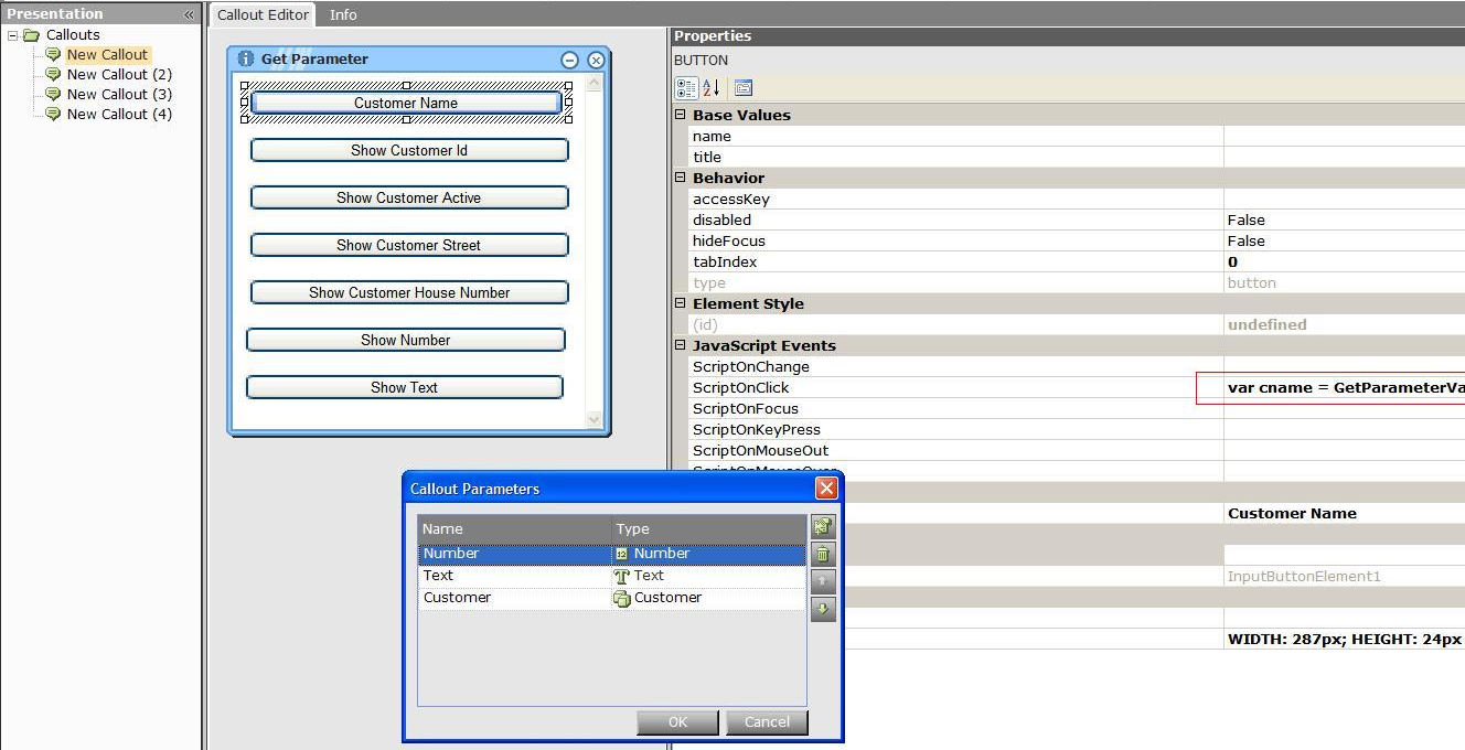 Business entities or business entity properties must be of a primitive type and not a complex type in order to use this functionality. In addition, the business entities and properties must be defined as parameters of the callout.