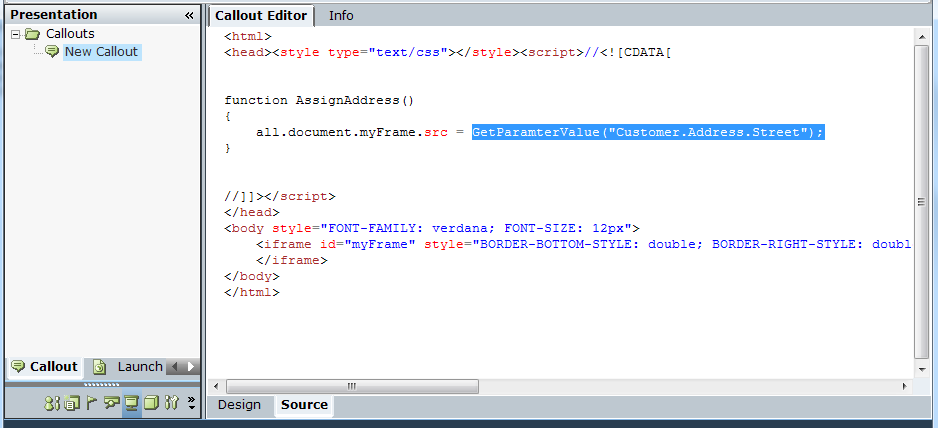 The figure below shows an example of this function and the syntax for using it. It shows a callout with an IFRAME.