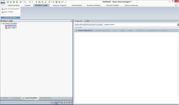 The Business Logic tab enables you to define the logical entities that determine the behavior of Real-Time Designer according to your business requirements. To specify the Business Logic that you want Real-Time Designer to implement, you define the following: