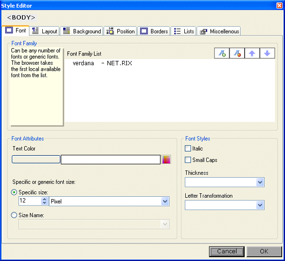 Style Editor: Displays a variety of options for visually editing the style of HTML text and graphic elements:
