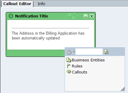 A callout can include static text (which does not change) or dynamic text (which reflects the current value of a business entity's property).