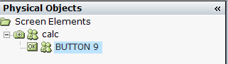 Click a key on the calculator, for example, the key. The screen element appears in the Screen Elements tree: |
