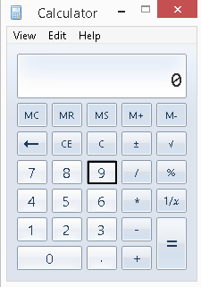 Open the standard Windows Calculator by selecting Start > All Programs > Accessories > Calculator. |