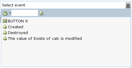 Double-click Button 9 to display the list of events supported for this screen element at this level: |