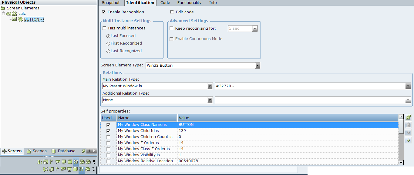 As you can see, Real-Time Designer automatically identified this screen element as a Win32 Button, as shown in the Screen Element Type field.