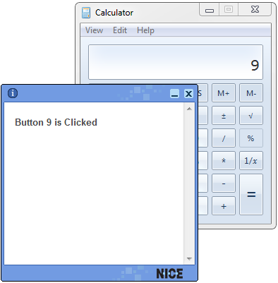 Go to the Windows Calculator and click Button 9. The configured callout is displayed. |
