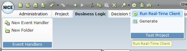 Save the project and click Test Project on the Quick Access Toolbar . Then, select the Run Real-Time Client option to run the project on the client’s machine: |