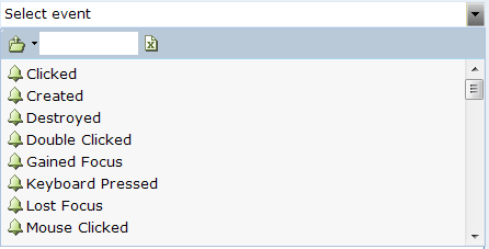From the When the following Event is raised drop-down list, select Screen Elements. A menu of captured screen elements is offered for selection. The first level shown is the application in which the screen element was captured. This level indicated by the small camera on its left side. |