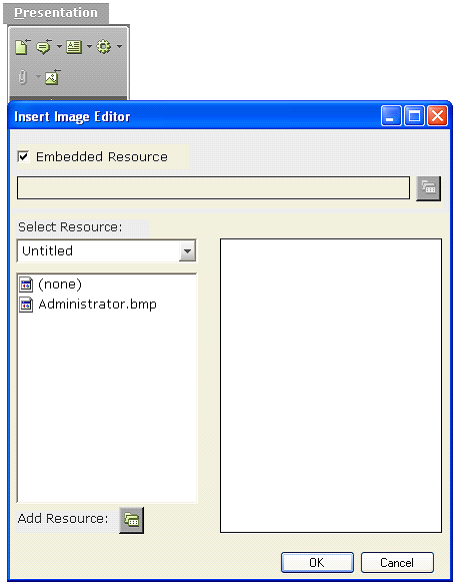 To embed another image file into Real-Time Designer, click Add Resource to display a standard section window from which you can select the file to import.