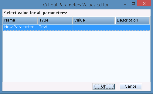 If you create a link to a callout that has callout parameters defined for it, the following window is displayed in which you can set or modify the values for those parameters: