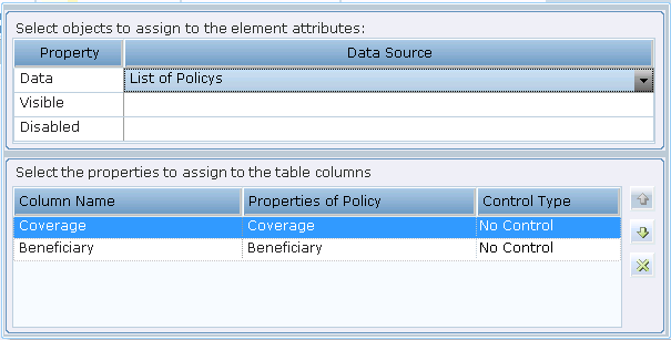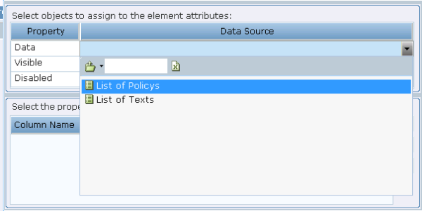 A List type property, as described in List Property – Example, can be assigned to a table in the callout, to be used as its data source. When a table is selected in the callout, clicking this tool displays the following window: