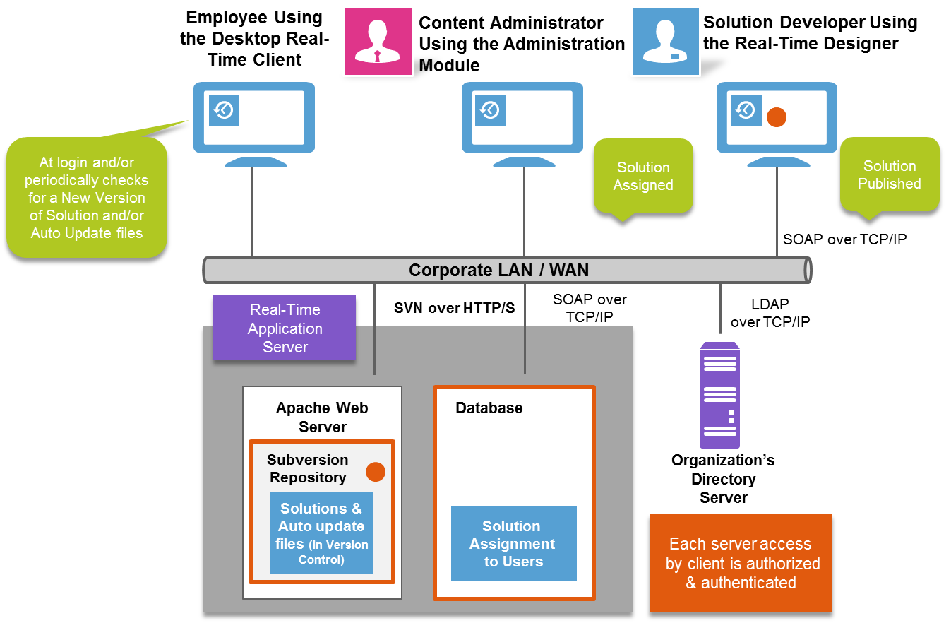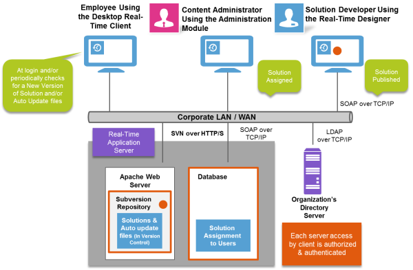 Advanced Process Automation extends the use of Java and J2EE technologies into Advanced Process Automation' product architecture, including the use of SOAP. The figure below provides a comprehensive view of this architecture, which supports users in various roles and access methods.