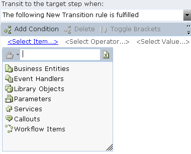 The drop-down list shows the parameters added to the workflow (see Step 2 above).
