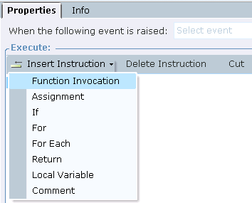 | 3. | Select the Function Invocation instruction in the Action Editor. See Action Editor for more information. |