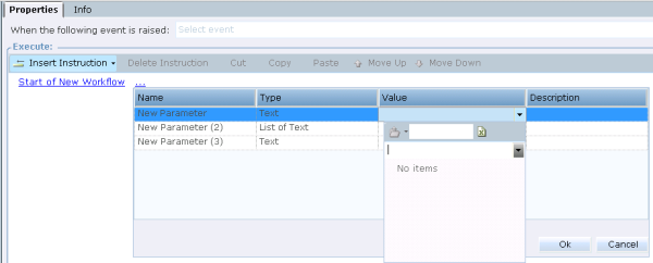 | 6. | Enter values for each of the workflow parameters and click OK. |