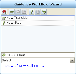 1. In the upper pane of the Guidance Workflow Wizard window, select the step to which you want to add a callout.