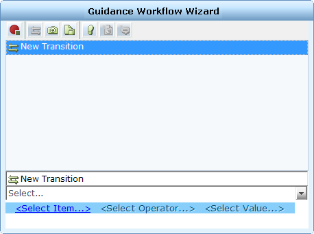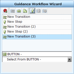 | 1. | In the upper pane of the Guidance Workflow Wizard window, select the transition to connect to a screen element. |