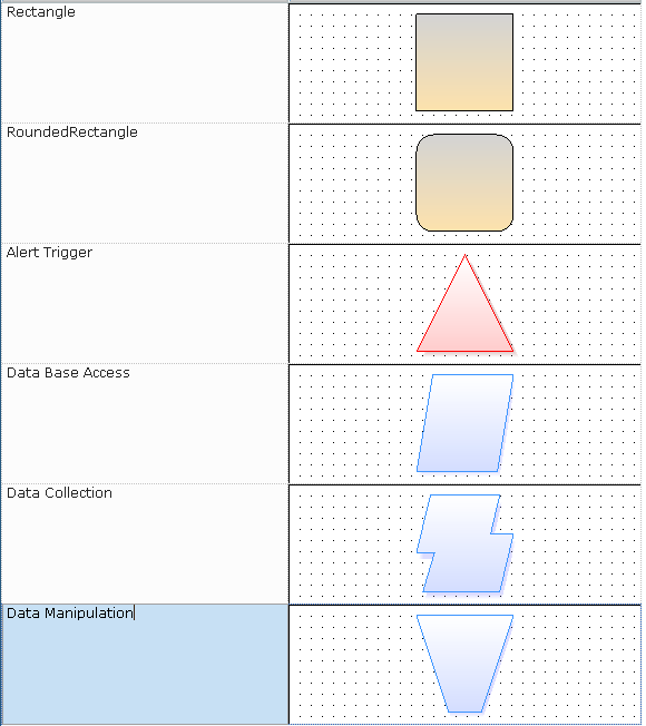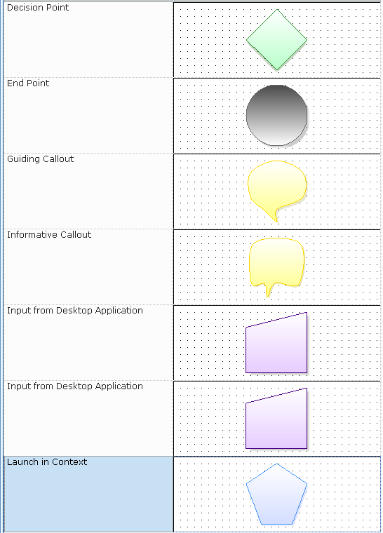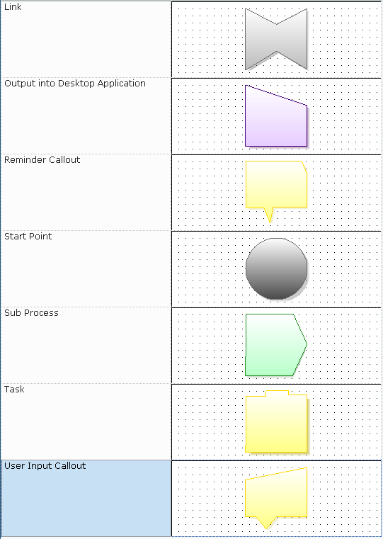You can use the following shapes when defining the elements in a workflow: