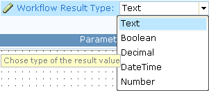 | 2. | Click Workflow result value type and select the type of value to be returned. |