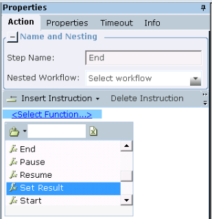 | 3. | Invoke the Set Result function. This function is used to invoke a workflow from a web service. For example, you may have a workflow that is responsible for adding a new entity to the database. In this case, the Set Result function is used to return the ID of this entity in the workflow. |