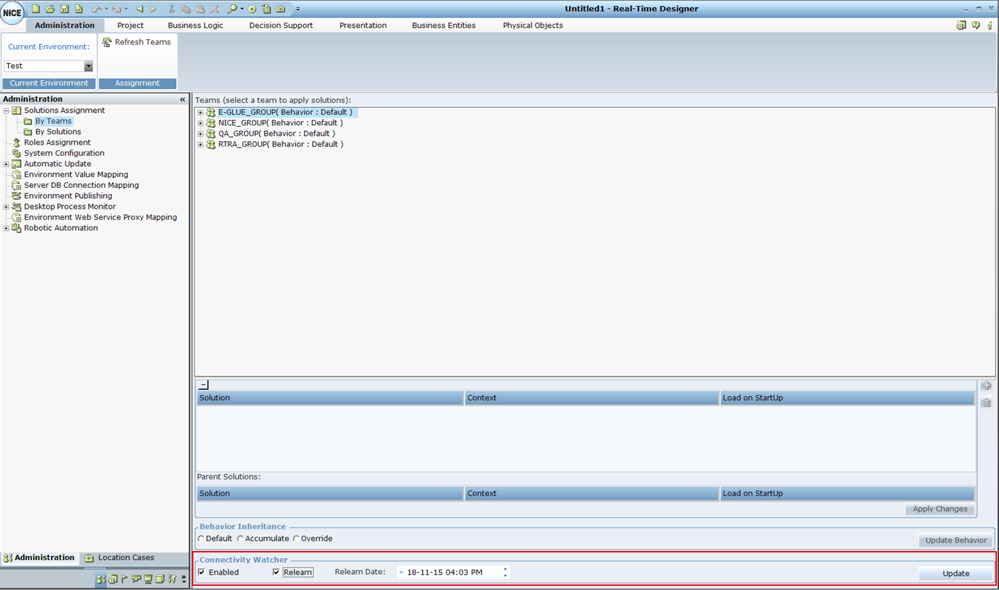 | 1. | In the Administration tab, in the Administration tree, expand Solutions Assignment and select the relevant team. |