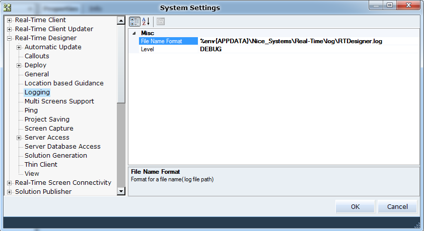 <fileNameFormat value="%env{APPDATA}\Nice_Systems\Real-Time\log\RTDesigner.log" />