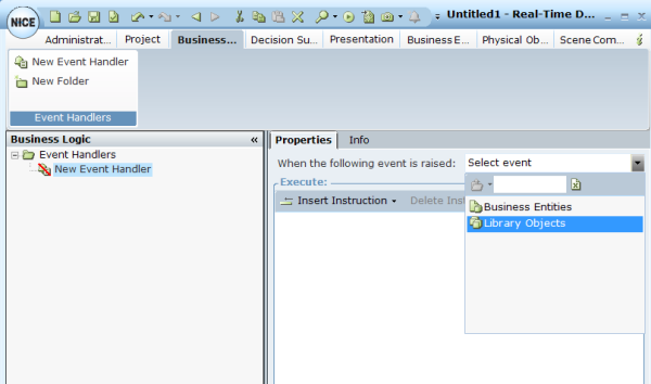 5. | In the Properties tab, from the When the following event is raised drop-down menu, select and double-click Library Objects. |