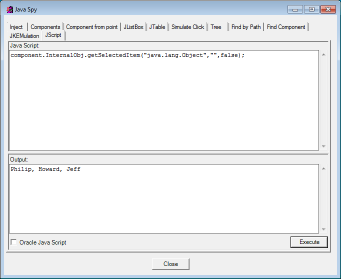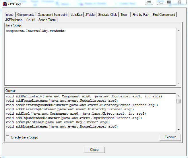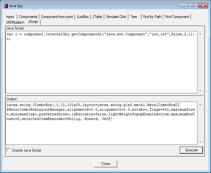 var c = component.InternalObj.getComponentAt(“java.awt.Component”,”int,int”,false, 2, 1);