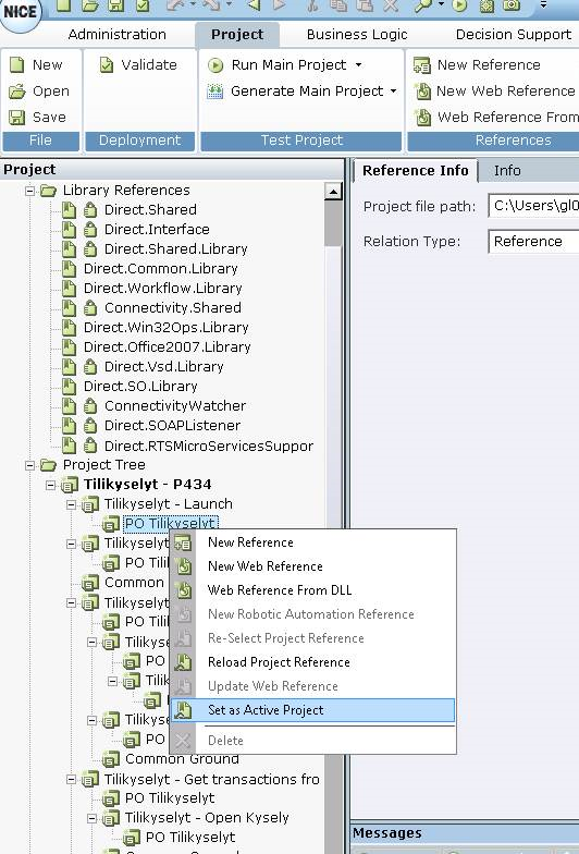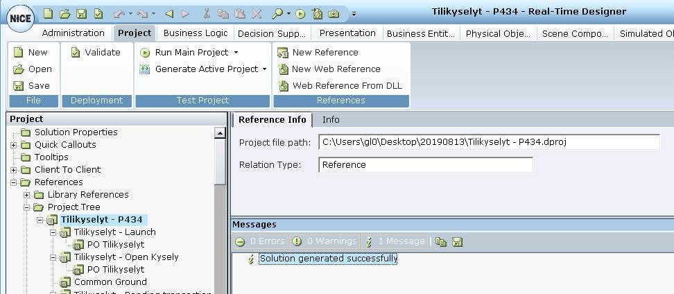 Projects with screen connectivity in referenced projects: Connectivity can only be updated in the active project. When you open the main project, the connectivity in referenced projects is read-only, and Real-Time Designer cannot update this. To resolve this: