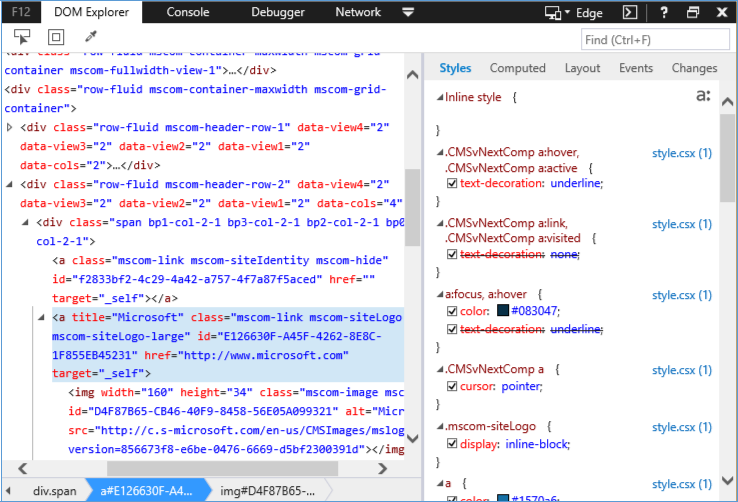 The DOM Explorer Tool shows you the structure of your web page as its being rendered in the browser and makes it possible to edit your HTML and styles in a live page. You can do this without having to edit and reload your sources, so you can quickly solve display issues or experiment with new ideas.