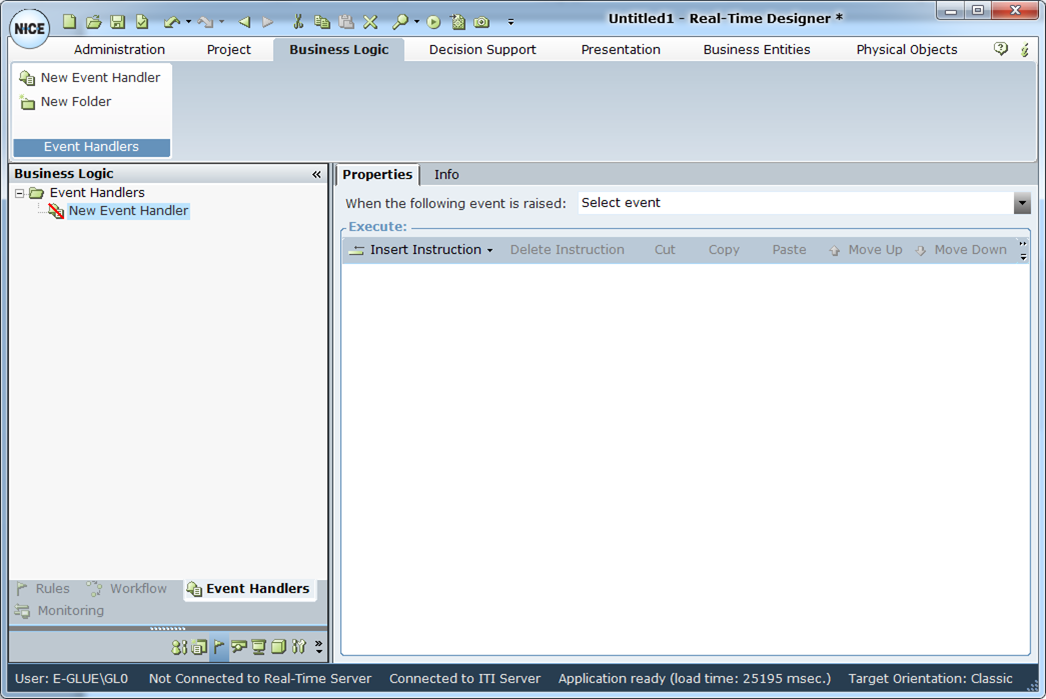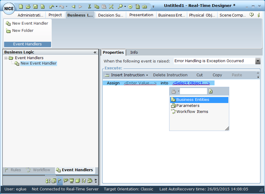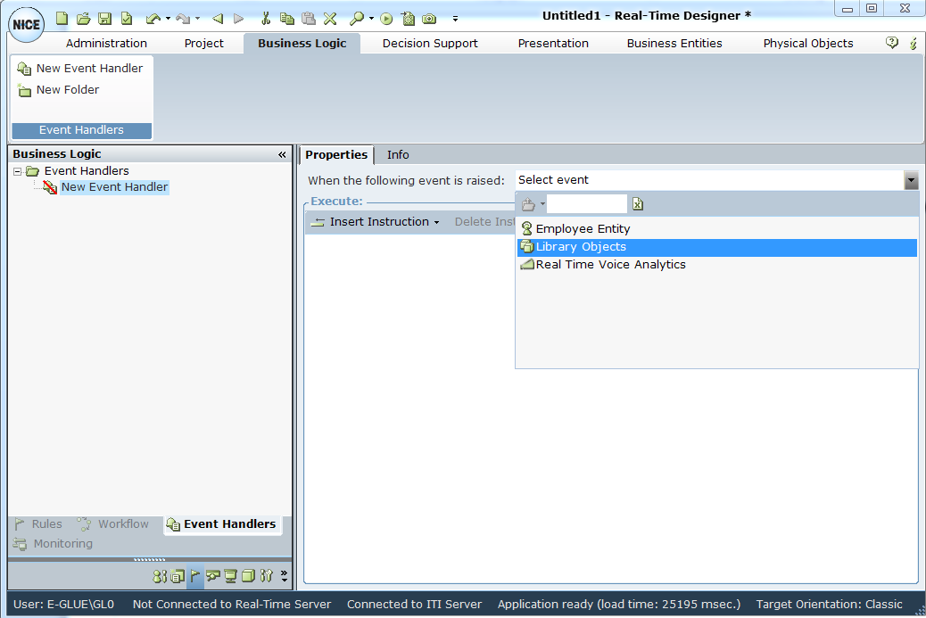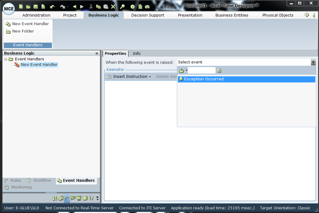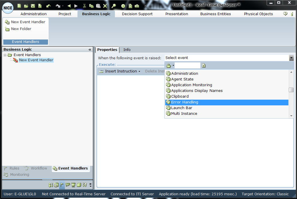 | 2. | Select Business Logic and select Event Handlers tab. |