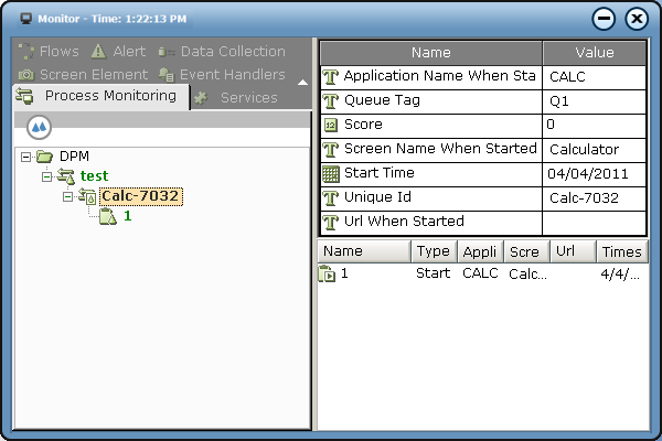 Process Monitoring tab (For more information on monitoring processes and tasks, see the RTAM Solution Guide.)