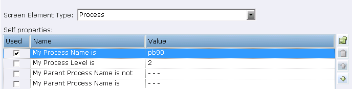 | 2. | Open the Screen Element Type drop-down list (only one Process appears in the list). |