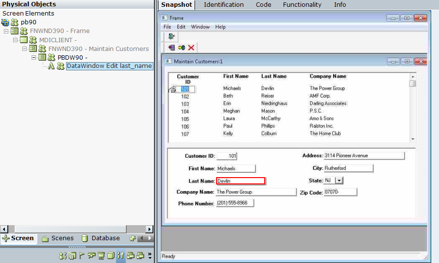 Viewing Functionality of Power Builder DataWindow Screen Elements