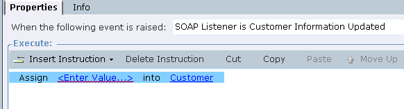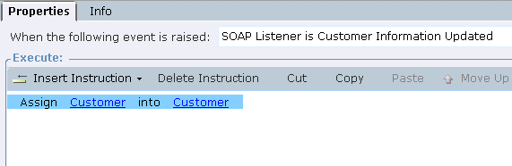 | 2. | In the new event, from the Properties tab, select Insert Instruction. |