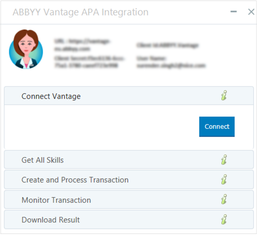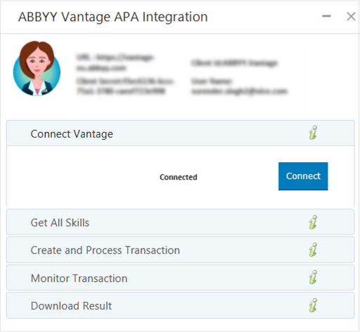 Requires you to enter the ABBYY Vantage user name and password in the RT Designer project.