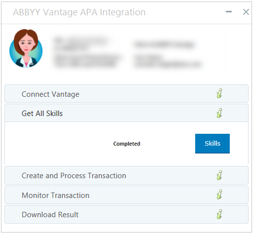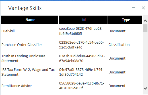 | 4. | Expand Get All Skills and click Skills. The skills are retrieved from ABBYY Vantage and the list of skills is populated. |