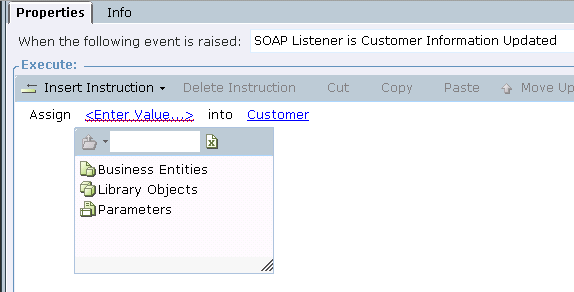 | 2. | In the new event, from the Properties tab, select Insert Instruction. |