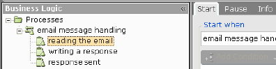 Every defined process must have both start and end triggers, in order to calculate the net handling time for that process. The email message handling process starts every time an email message is opened, which means that a new process instance begins counting each time a new email window is opened.