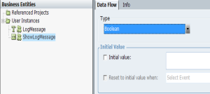 a. In Business Entities > Instances, create new instance LogMessage of type Text and ShowLogMessage of type Boolean.