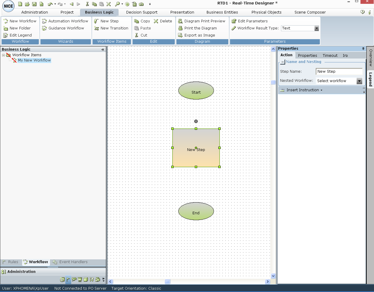 3. | While the New Step box in the workflow diagram is selected, define the properties of this step, as follows: |
