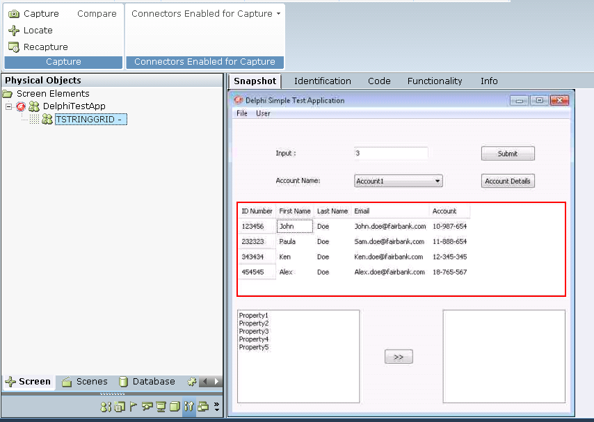 | 2. | Capture a Screen Element in the application. For more information, see Capturing Screen Elements. |