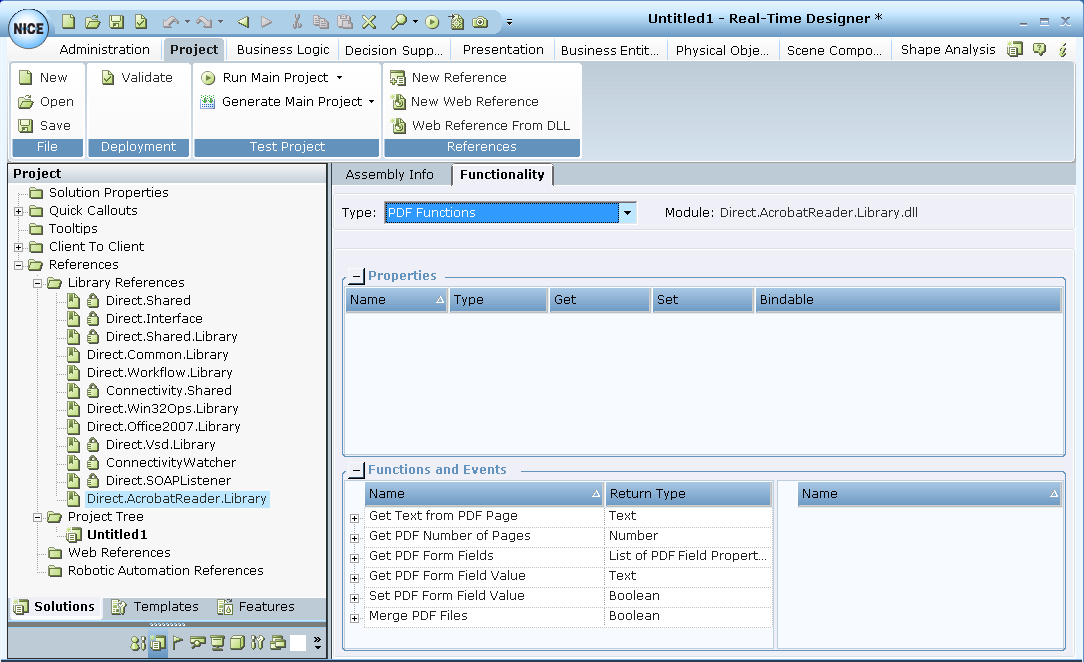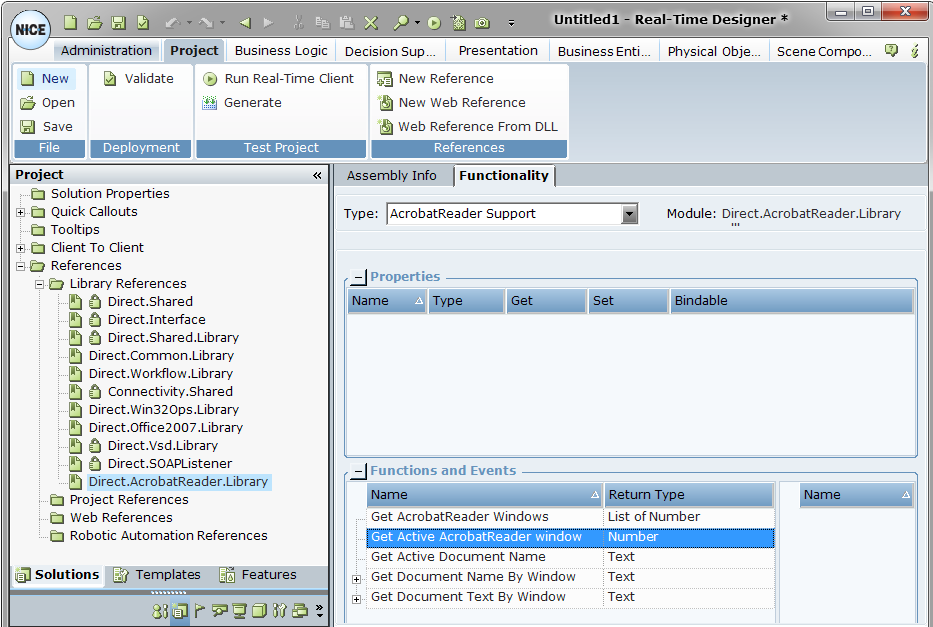 | 2. | Under the References section, add a new reference to the Direct.AcrobatReader.Library assembly by clicking New Reference on the ribbon. |