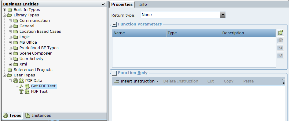 | 3. | Add a New Function to the PDF Data business entity type. Give the function a name, for example, Get PDF Text: |