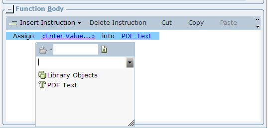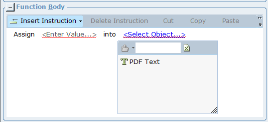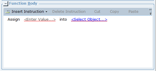 | 4. | In the Function Body pane, click Insert Instruction and select Assignment: |
