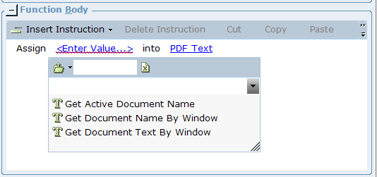 | 9. | From the drop-down list, select the Get Document Text By Window function: |