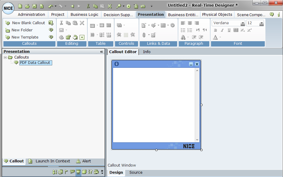 | 14. | Go to the Presentation module and create a New Blank Callout. Give the new callout a new, for example, PDF Data Callout: |