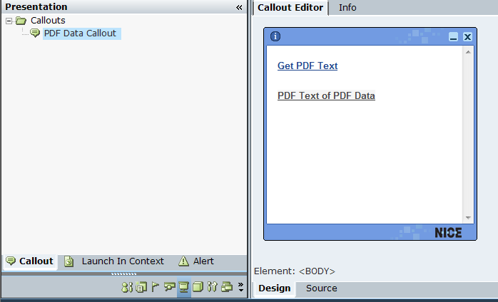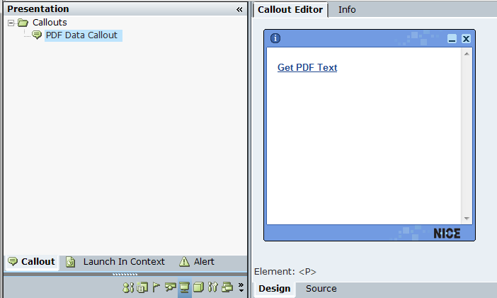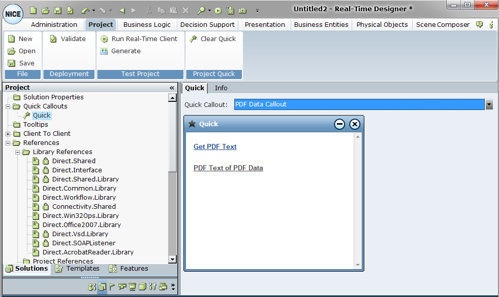 | 19. | Go to the Real-Time Designer Project tab and add the PDF Data Callout into the Quick window: |