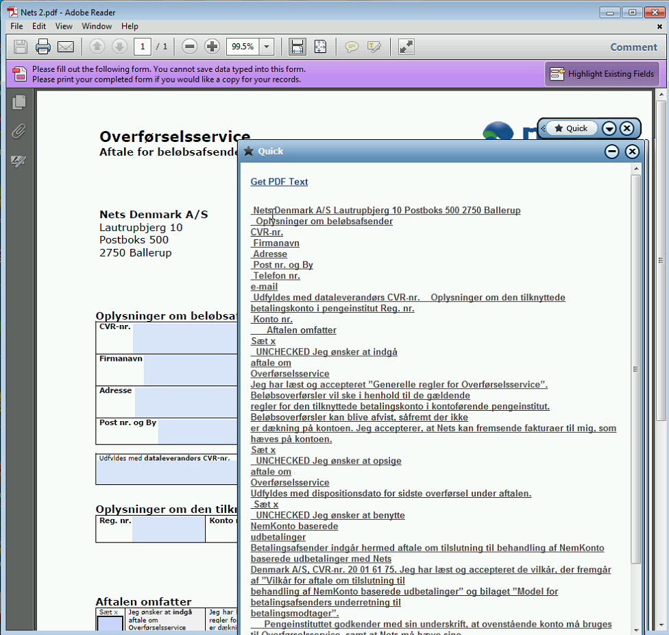 | 4. | Click the Get PDF Text link in the callout to get the data of the active PDF document: |