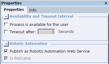 | 2. | Select the Publish as Robotic Automation Web Service option to ensure that the workflow can be used as a remote robot workflow |